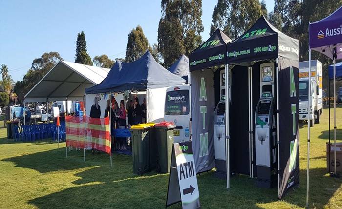 Enter: The 1.5m x 1.5m gazebo, custom-printed to match his brand colours.